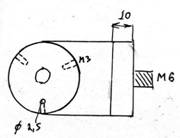 Крепление к мачте осуществляется при помощи стакана высотой 50мм диаметр 25мм (для моего случая). На расстоянии 20мм, от верхнего края стакана, сверлятся три отверстия для противовесов диаметром 5мм. Длина противовесов 51см. Две шайбы на рисунке - это для варианта разборной походной антенны (2 по 2м).