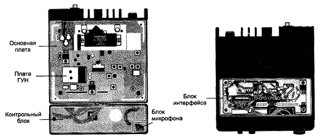 К антенному гнезду трансивера подключают частотомер и эквивалент антенны. Устанавливают частоту 146,000 МГц, нажимают клавишу РТТ и регулируют, если это необходимо, переменный конденсатор ТС1001 на плате MAIN UNIT (см. рис. 4) так, чтобы показания частотомера равнялись 146,000 МГц ±100 Гц.