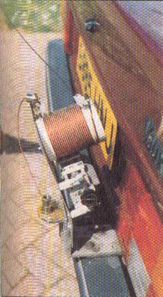 Для начала, я решил попробовать полуволновый вибратор на 80-метровый диапазон, выполненный из провода диаметром 0, 6 мм в пластиковой изоляции. Я понимал, что питаемая напряжением полуволновая антенна, в моих условиях, будет лучшей DX-антенной, поскольку будут устранены потери в земле, присущие мобильной работе. Я разработал простое согласующее устройство - тюнер, расположил его на задней панели автомобиля у бампера (см. фото). Антенна и бечева змея были прикреплены к платформе змея, внизу – бечева была закреплена на одной из дверных петель автомобиля, а антенна - прямо к согласующему устройству.