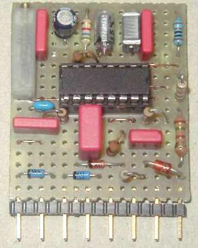 Для распайки деталей для схемы стабилизатора и схем защиты используется небольшая платка размерами 40 х 45 мм. Медные дорожки (розового цвета) удаляются в обозначенных местах. Сверло по дереву или металлу диаметром 3…4 мм подходит для этой операции. Соединения кабелей обозначены условно разорванными - они крепятся к плате. Это же относится к выводу общего провода, который расположен на верхней поверхности платы, с помощью которого подводится потенциал “земли” к вертикальным медным дорожкам.