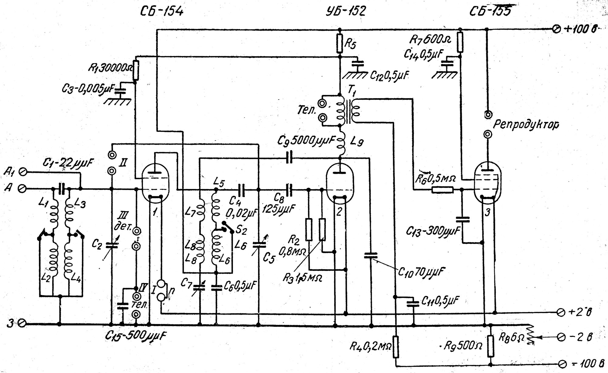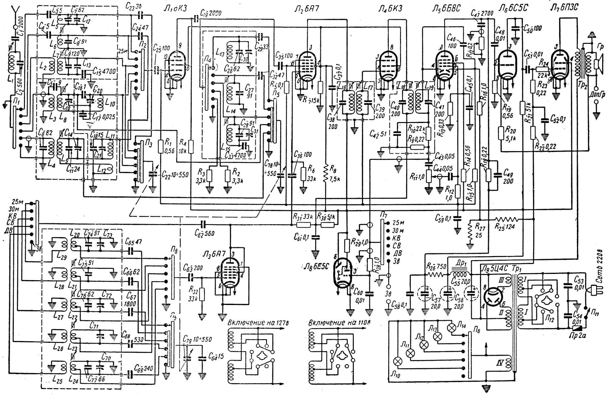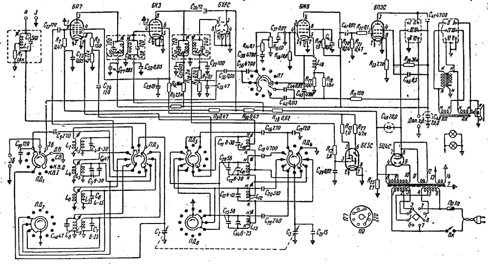 Изображения ламповых приемников и радиоламп, подписи к ним, а также схемы предоставлены В.Брусникиным (RN1NFM) http://oldradio.onego.ru/