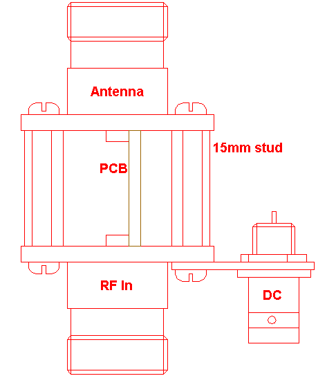 Изготовим "корпус" RF головки - разъемы стягиваются между собой при помощи винтов М3 соответствующей дины. (Необходимое расстояние между разъемами определяется металлическими втулками, одетыми на винты, как вариант. Прим. RW6AVK.)