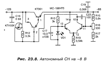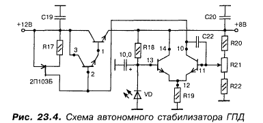 “С”: Я просто приведу практически проверенную и хорошо зарекомендовавшую себя принципиальную схему (рис. 23.6).